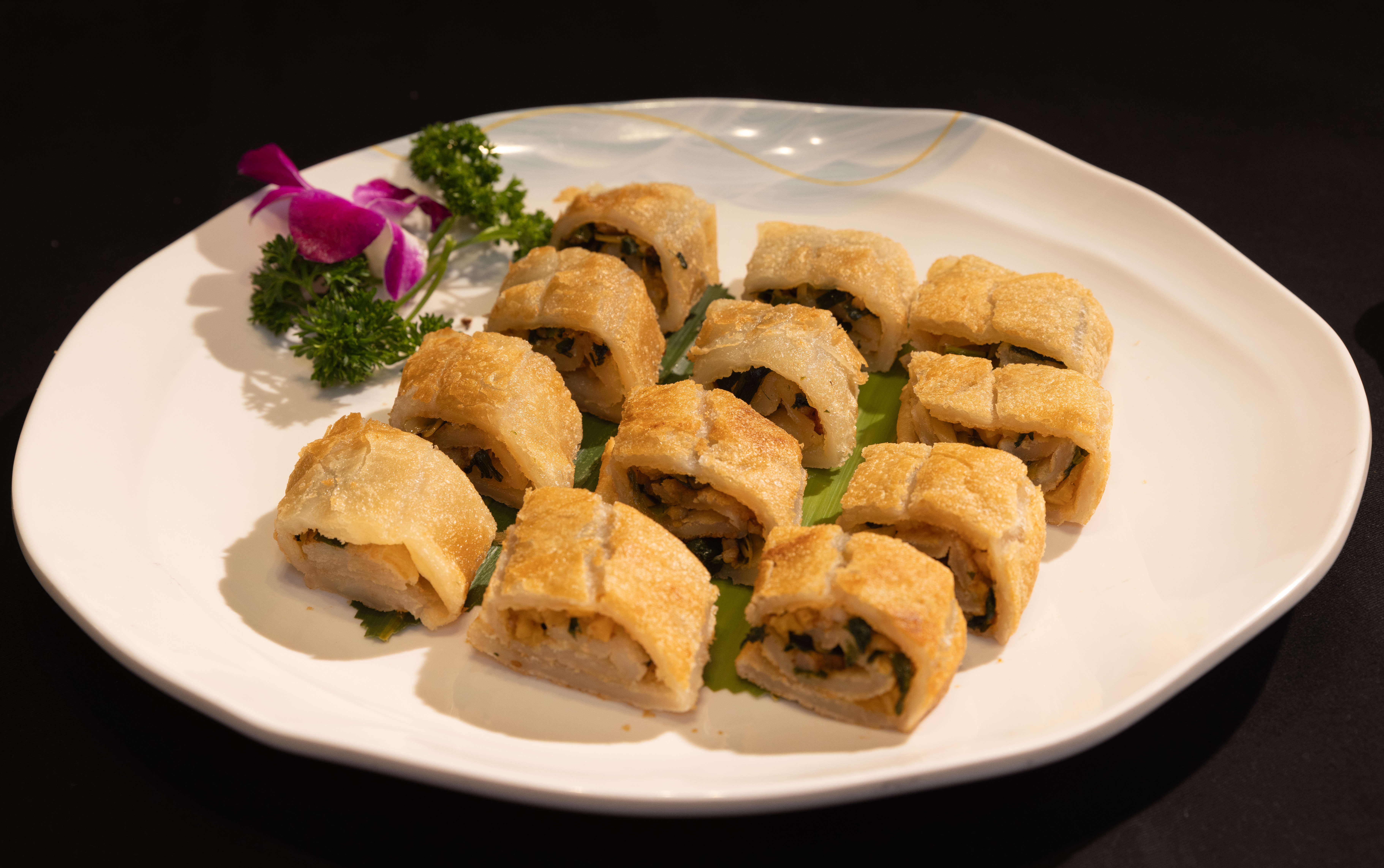 荞菜薄撑,鲜嫩荞菜携着田野清气,细细切碎,配上油脂丰富的烧肉爆炒,米浆煎至金黄。外皮焦香酥脆,内里软嫩清香,趁热咬开,荠菜的鲜爽与烧肉的醇厚在口中交织,米香裹着馅料的汁水,满嘴都是乡间最质朴的欢喜。