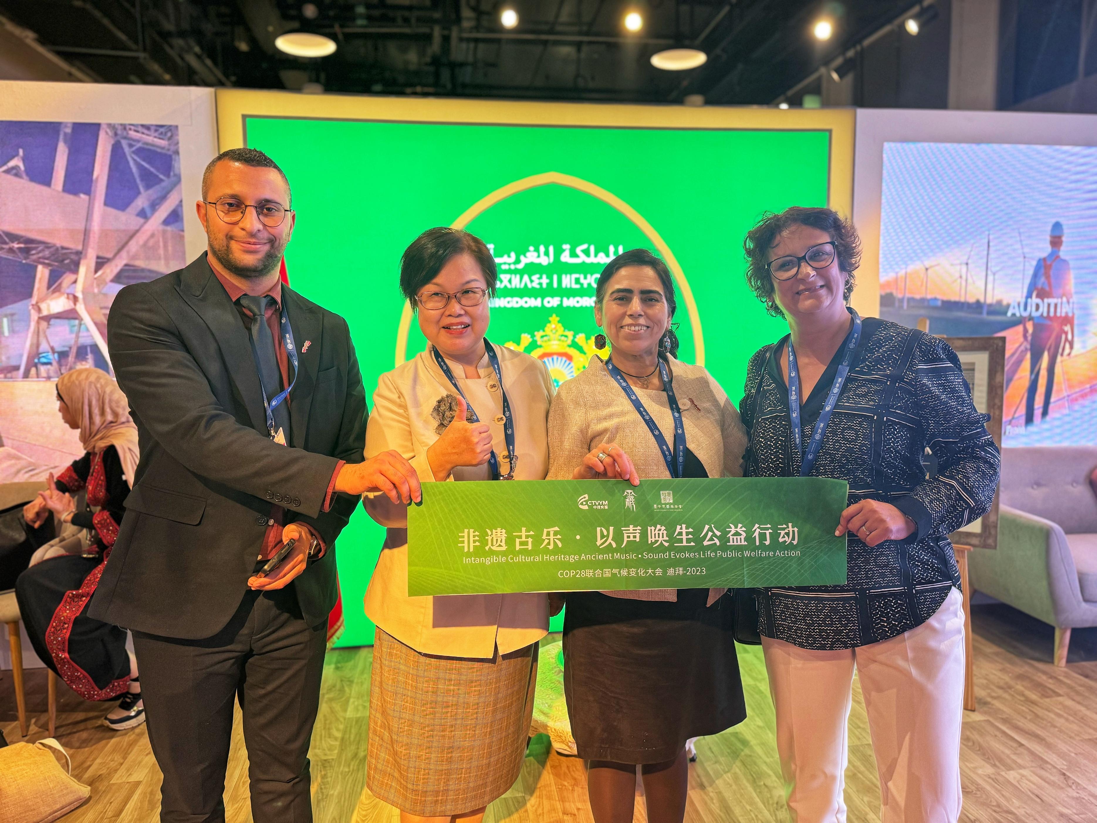 12月4日,一项特别的发布活动引起了众多来宾的关注——由墨子慈善基金会代表团在中国馆现场发布“非遗古乐·以声唤生”非遗古乐保护与传承公益基金计划。该计划是由墨子慈善基金会、中视央媒(国际)传媒集团有限公司、深圳心布洛文化传播有限公司等公益机构与企业在中国国内联合发起,本次在联合国气候变化大会中国馆隆重发布旨在进一步宣传和推广非遗古乐,提高国际社会对非遗文化的认识和保护意识。