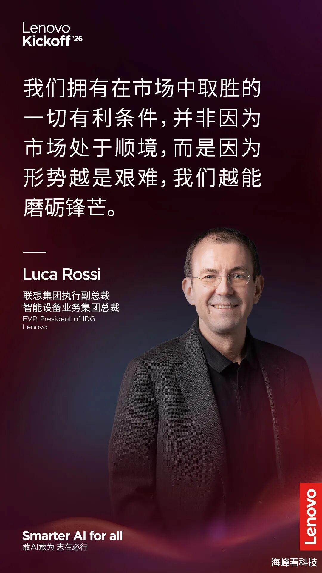 联想集团执行副总裁、智能设备业务集团(IDG)总裁 Luca Rossi表示,过去一年,联想已为AI能力与差异化奠定基础,而新财年的重点在于将其转化为业务执行力与生态领导力。联想将继续巩固核心业务优势,推动营收实现双位数增长,并全面投入智能生态体系构建,以天禧个人超级智能体为核心,联想正在打造具备感知、记忆、规划与执行能力的终端体验,并通过云边协同与超级互联,实现跨设备、跨平台的无缝协同。