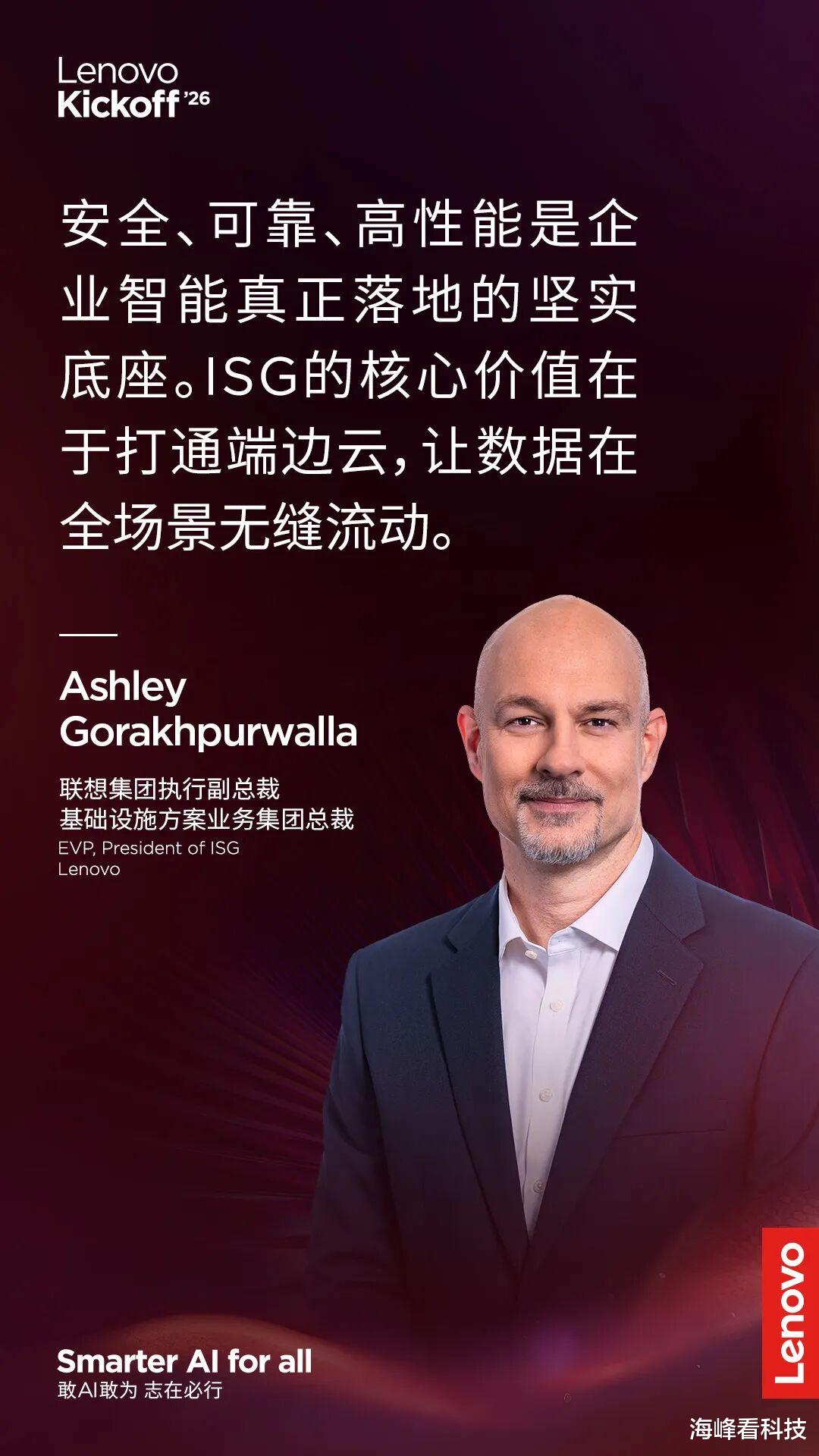 而在这一切之下,基础设施始终是最关键的支撑。随着AI计算从训练向推理迁移,算力正从云端向本地与边缘延伸。联想集团执行副总裁、基础设施方案业务集团(ISG)总裁 Ashley Gorakhpurwalla表示,ISG的转型正在进入收获阶段,新财年将同时实现增长与盈利能力的提升。在此过程中,ISG将通过进一步简化业务与产品体系,加速资源向高价值领域集中,并以更强的执行力推动存储、服务和软件的附加销售,将业务价值转化为利润。在企业智能时代,ISG将依托AI推理能力、云生态合作以及全生态链混合式AI解决方案,持续扩大竞争优势,并通过One Lenovo协同模式,推动基础设施、服务与智能能力深度融合。
