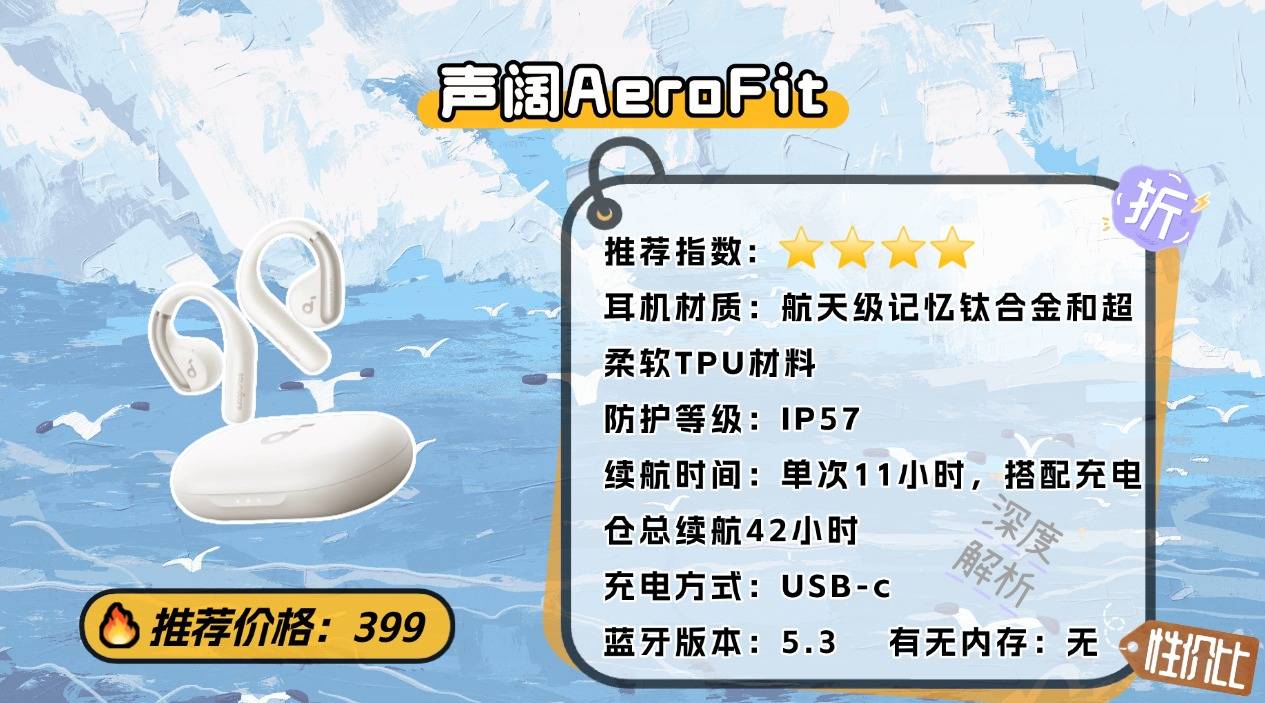 声阔飞跃线 Air 是一款开放式运动耳机,以舒适佩戴和高解析音质著称,被评测认为是“比骨传导更自然”的新一代选择。