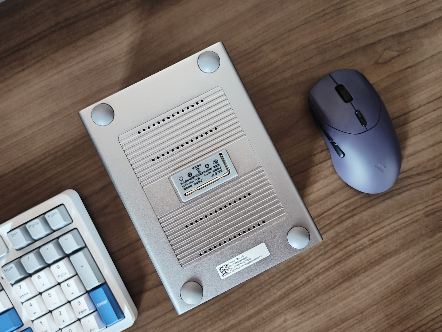 散热是保障机器稳定运行的必要条件,零刻ME Pro采用鼓风机风扇设计,真正形成冷热交换。两个抽屉式硬盘架均采用导热硅胶+铝支架设计,形成热处理导热,均热,散热三要素。机身底部SSD安装区域,也同样配备导热硅胶。既能减少硬盘震动产生的噪音,又能帮助散热。使用时机器运行稳定,不仅没有出现过热现像,噪音控制这一块也很到位,平时放在卧室也几乎听不到任何声音,散热+静音,家人对它都很满意。