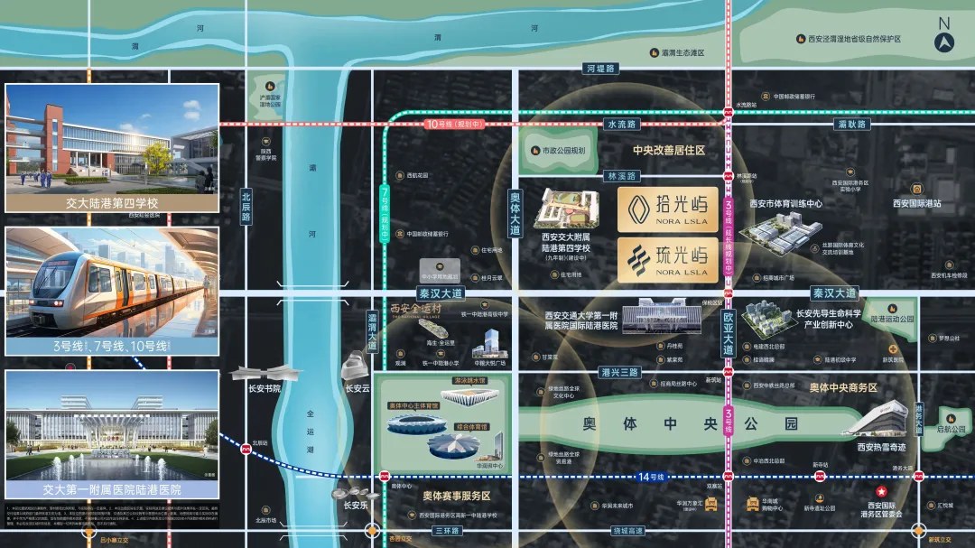 秦汉大道以北的绿城琉光屿,是绿城浮光双屿项目之一,也是奥体北的改善项目。项目近交大附属陆港第四学校,周边有交大一院陆港院区、地铁3号线等配套。