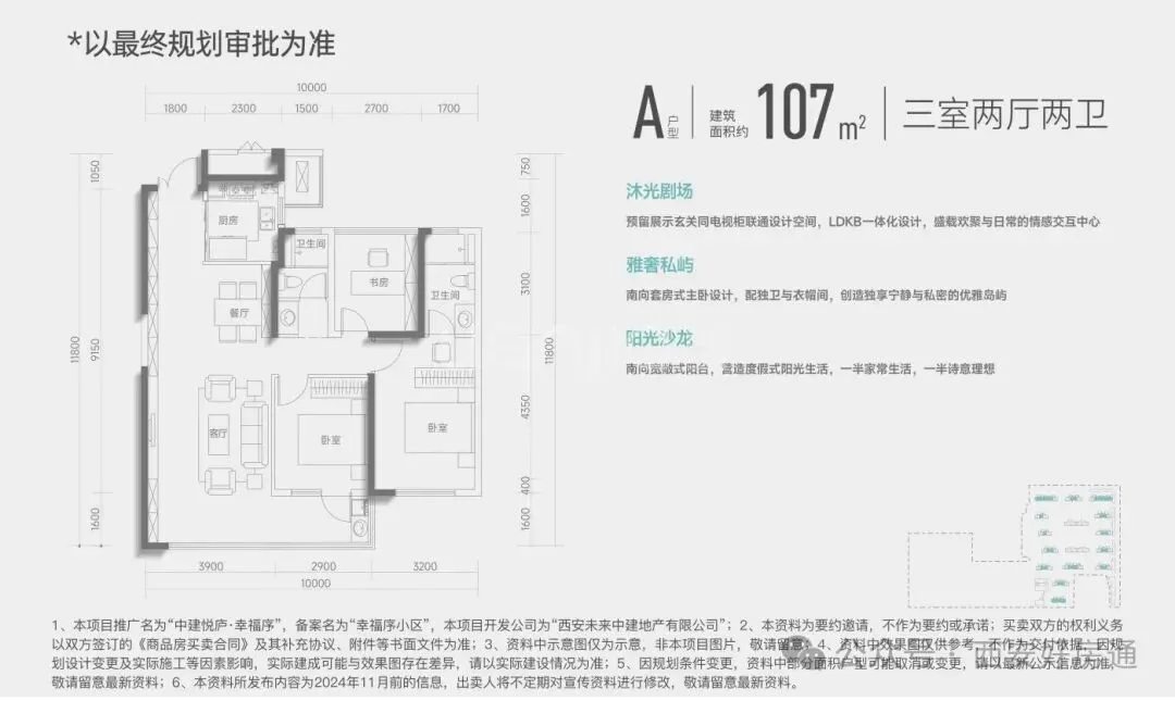 本次推出5#楼中,含多套约107㎡、约143㎡房源,均价18370元/㎡。其中约107㎡户型是三室两厅两卫,户型方正,三开间朝南,LDKB一体化设计,友好首置。