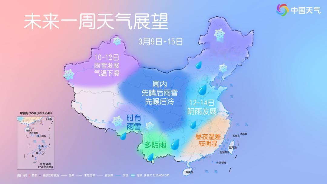 随着冷空气的到来,10日起新疆的雨雪开始增多。之后冷空气东移并配合明显的暖湿气流,西北、西南至华北、东北将迎来一轮大范围的降水过程。