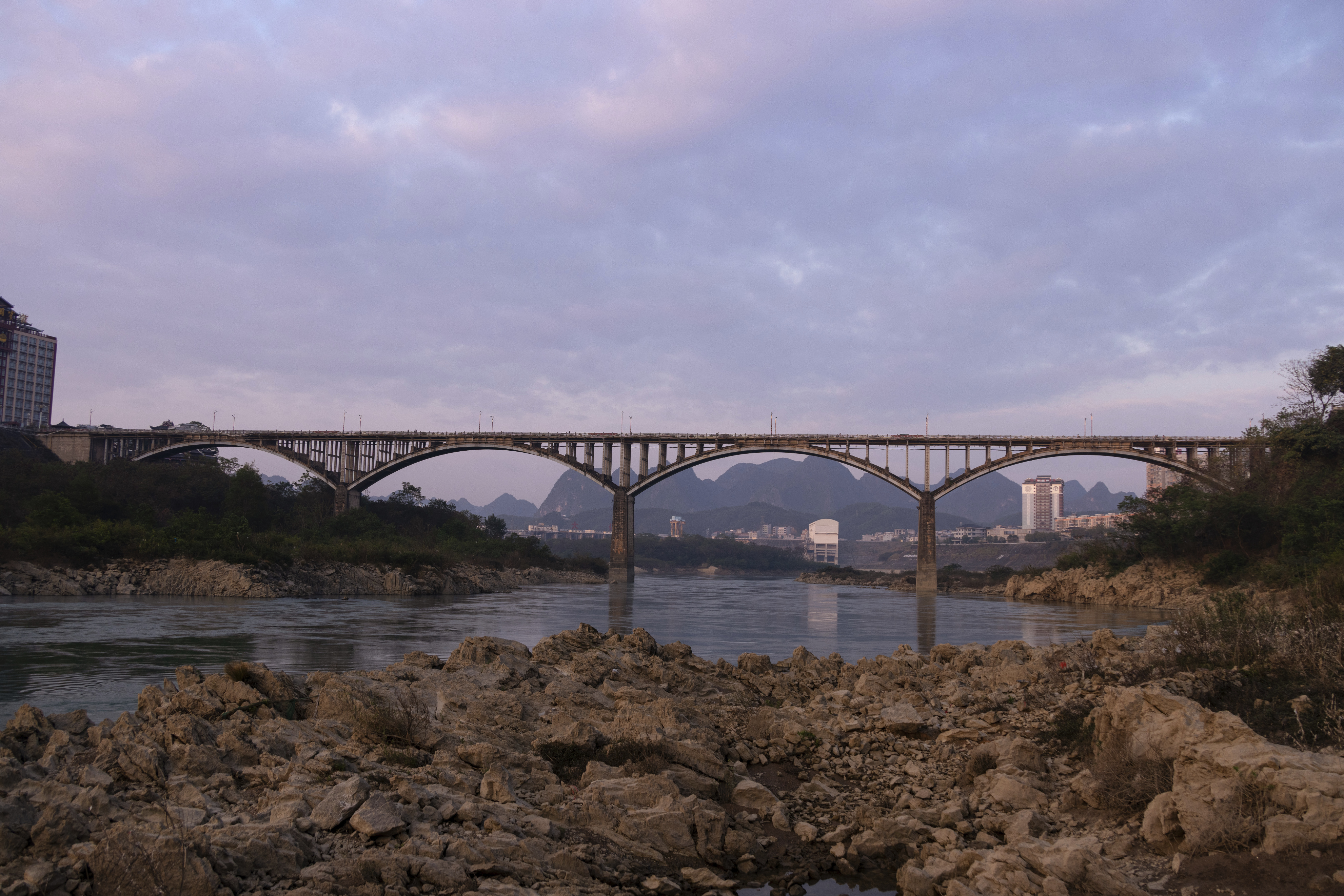 然后,我们找了一个河边的宾馆住下,在房间就可以俯瞰县城两座主要的桥梁和仿古的楼阁。