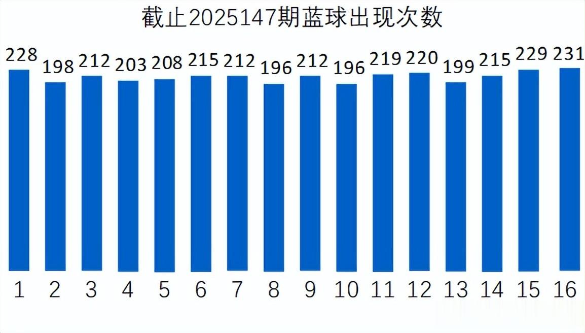 2、因2025147期8号蓝球在1——16号区间中间的位置,2025148期蓝球走向,在不考虑重码的情况下,号码既可能走小,也可能走大,具体分析如下: