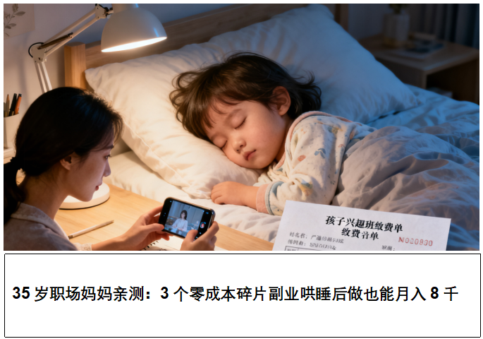 35 岁那年,我成了 “月光族”—— 月薪 5 千,扣完房贷只剩 2 千,孩子的画画班要交 1800,爸妈的体检费我犹豫了半个月没敢提。那段时间我刷遍了副业攻略,要么要囤货、要么要坐班,直到试了 3 个零成本方法,才发现不用拼时间也能赚钱,现在每月多赚 8 千,终于不用再为钱发愁。