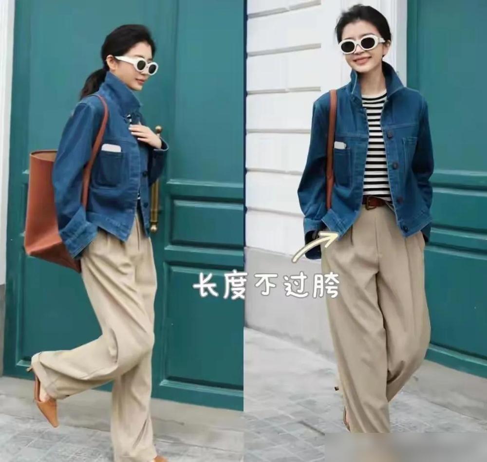 九分裤更不挑人,长度在脚踝上面一点,能露出脚踝和一点鞋面,视觉上拉长腿。日常上班穿很合适。