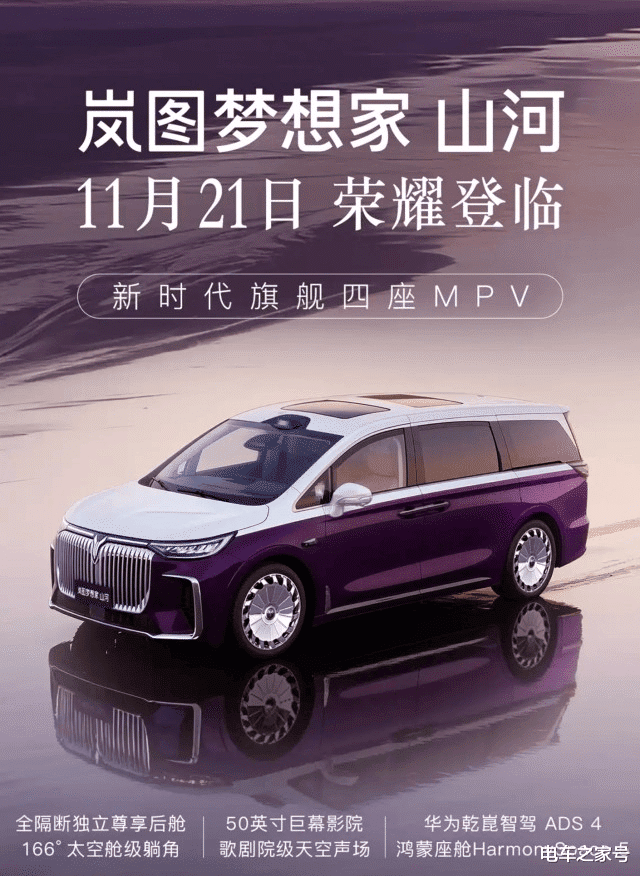 近日,岚图品牌官方宣布,旗下中大型 MPV——岚图梦想家山河版将于 11 月 21 日正式上市。此外,岚图汽车发布海报消息,岚图梦想家10月份单车销量为6632辆,自2022年上市至今,已累计交付超15万辆。