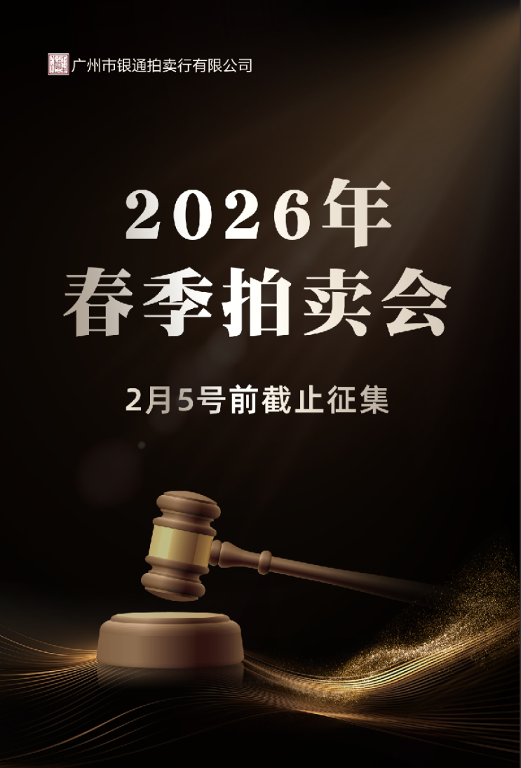 当文化兴国战略的春风吹拂在艺术市场,广州市银通拍卖行2026年迎春拍卖会已进入藏品征集倒计时阶段——2026年02月05日,征集藏品将正式截止。我们广州市银通拍卖行有限公司是一家以经营文物艺术品为主的综合性拍卖公司,成立于2004年11月,总部设于广州。广州市银通拍卖行是中国老牌拍卖企业之一,为广东省为数不多拥有文物拍卖资格的拍卖行。公司每年定期举办大型艺术品拍卖会,拍卖项目包括:中国书画、油画雕塑、版画、水彩、水粉等大类,另外常年公开拍卖包括中国书画、名家篆刻及印石、古董珍玩、珍贵瓷器、紫砂壶茶具、历代钱币以及古代玉器等藏品。