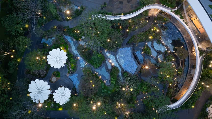 四栋楼不做正南正北,而是偏转角度,让每一户的主视野对准金融城天际线;会所不配恒温泳池,改放乒乓球桌和棋牌室;园林不堆天价奇石,反而搬运川西九寨的自然野趣;老人房里交付泡脚池,洗衣机抬高67公分避免弯腰,主卧及长辈房加装弥散式增氧机。