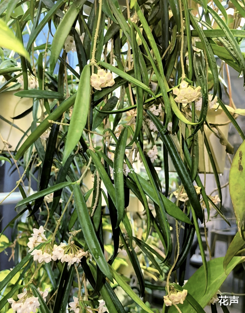 牧羊人球兰和多数球兰不太一样,它的攀援性很差,基本不爬藤,枝条却很长,可达一米八,分枝性好,挂起来使其自然垂落,株型像瀑布一样,枝繁叶茂,立体感十足,适用于屋檐下、窗户旁、楼道等地方,小花盆就可栽培,无需大盆,不占空间。