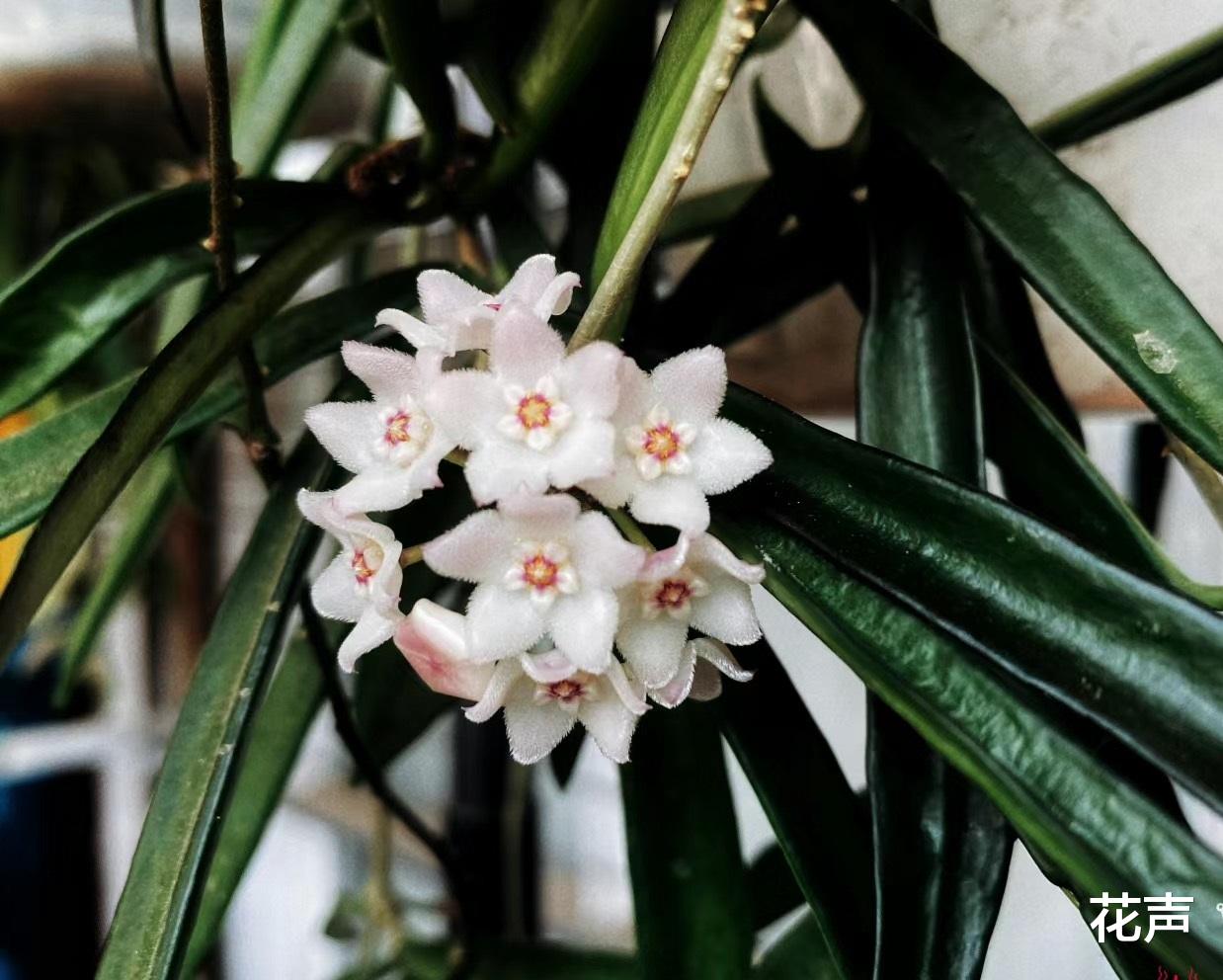在开花方面,牧羊人球兰在球兰家族算勤花的,每年能重复开花多次,花期是春季到秋季,5-10月份这段时间会一波接一波地开花,花量也多,成株经常是几十朵花同时绽放,能给养花人满满的成就感,相对于那些几年不开花的品种,它可以说是“开花劳模”。