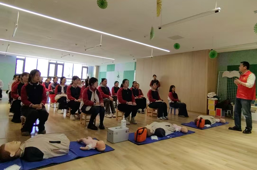 为切实提升幼儿园教职工应急救护能力,筑牢幼儿生命安全防护屏障,11月21日,西安市心连心志愿者协会院前急救支队在主讲导师魏文强的带领下,走进西咸新区沣东第五幼儿园,采用循证医学数据,为全体教职工开展专业实用的急救知识培训,以志愿力量守护幼儿健康成长。