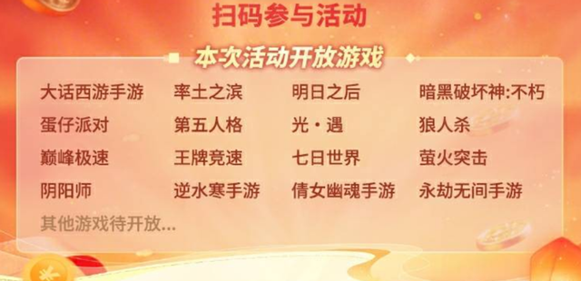 网易游戏2026新春开运补贴福利活动还在进行中,一直到 3月31日都能参与,除了《蛋仔派对》,还有《逆水寒手游》《第五人格》《永劫无间手游》等一众网易游戏都可以参与的噢~