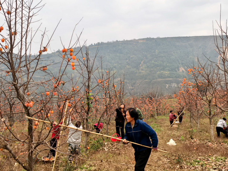 当天,在门岩村百亩柿子园,漫山遍野的柿子树枝繁叶茂,一颗颗个大饱满、色泽橙黄的柿果挂满枝头,村民们忙着采摘、分拣、装车,一片繁忙的丰收景象。