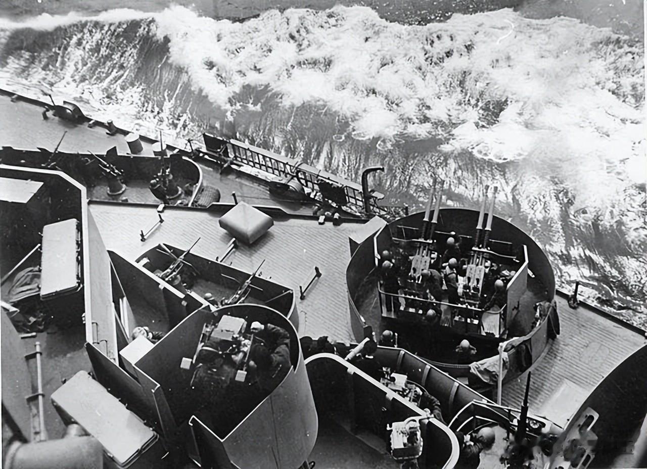 “马萨诸塞”号则参加了盟军在北非的“火炬行动”。1942年11月8日,在卡萨布兰卡海战中,它与未完工的法国战列舰“让·巴尔”号展开炮战,其16英寸炮弹多次命中敌舰,有效压制了对方火力,展示了其主炮的精确性与毁伤力。