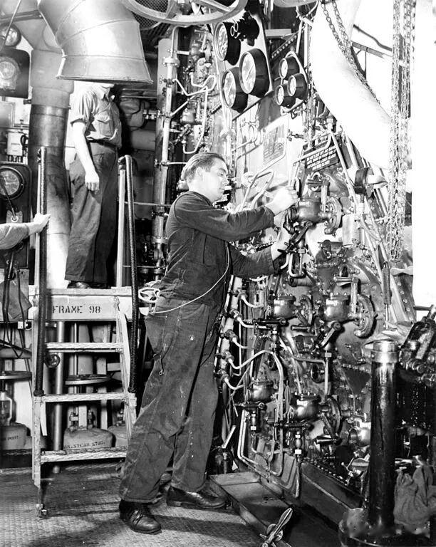 一名工作人员正在修理阿拉巴马号的锅炉,1943年