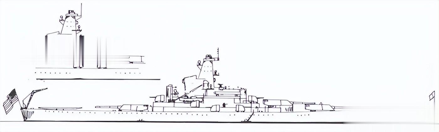 舰体尺寸与动力布局是另一大难题。为了在更短的舰体长度(总长207.3米,比北卡罗来纳级缩短了超过15米)内维持不低于27节的航速,同时为更厚重的装甲腾出重量配额,必须采用极其紧凑的动力装置布局。设计团队从旧有的列克星敦级战列巡洋舰方案中汲取灵感,反复调整锅炉与涡轮机的布局,最终采用了锅炉与涡轮机交错并排的紧凑安排,甚至将蒸发器和蒸馏设备也集成进机舱空间。