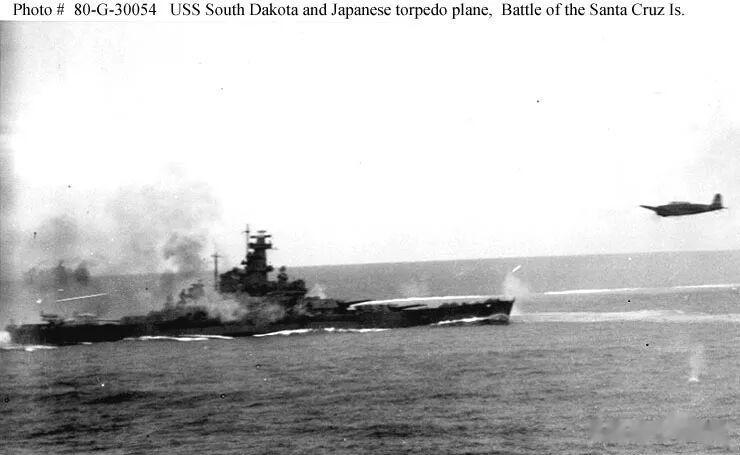 “南达科他”号的早期经历尤为突出。1942年10月,它在圣克鲁斯群岛海战中护卫“企业”号航母,遭一弹命中但损伤有限。