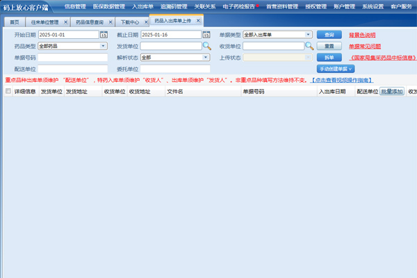 3、数据同步:登录码上放心平台,导出“往来单位”和“药品信息”数据包,通过客户端“数据下载”功能导入至PDA。此步骤可减少90%的人工录入错误,确保扫码时系统自动关联药品批次、规格等关键信息。