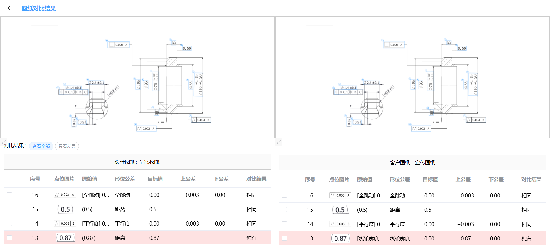 在制造业研发、生产、质检的全流程中,图纸作为核心技术载体,其版本迭代、差异核查的准确性与效率,直接影响产品研发进度和生产质量。传统图纸对比模式下,工程师需人工逐行、逐维度核对两张图纸,不仅耗时耗力,还极易因视觉疲劳遗漏细微差异,尤其面对复杂的机械装配图、电气原理图时,人工对比的误差率更是居高不下,给后续生产埋下质量隐患。