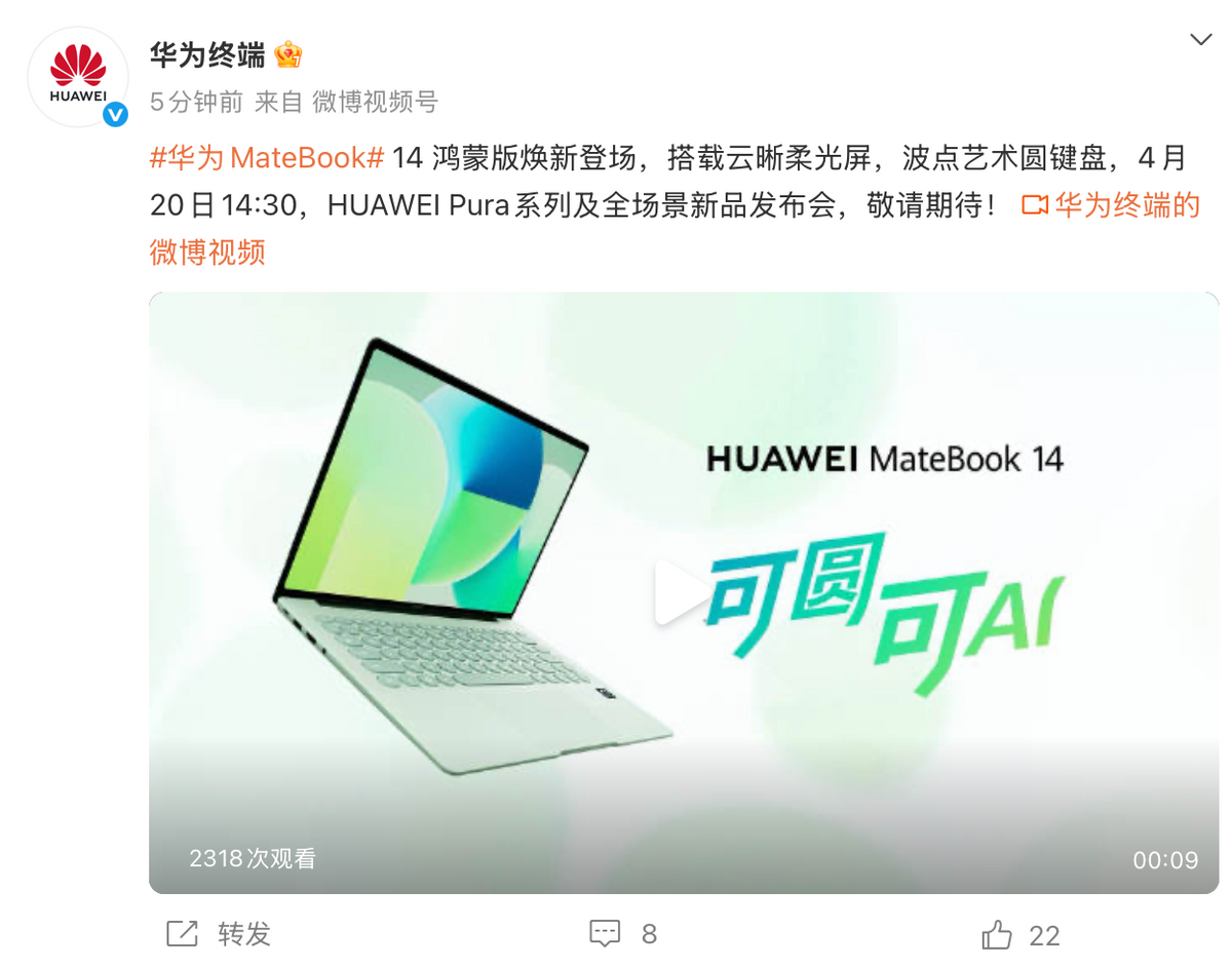从外观颜值的突破,到屏幕体验的升级,再到鸿蒙系统的赋能,华为MateBook 14 鸿蒙版的每一处升级,都精准贴合了当代用户对笔记本“好看、好用、好聪明”的核心需求。目前,新品发布已进入倒计时,这款集颜值与实力于一身的鸿蒙电脑,能否进一步推动鸿蒙办公生态的普及,为用户带来更高效、更舒适的智慧办公体验,值得我们共同期待。4月20日,让我们一同锁定华为新品发布会,见证华为MateBook 14 鸿蒙版的正式亮相。