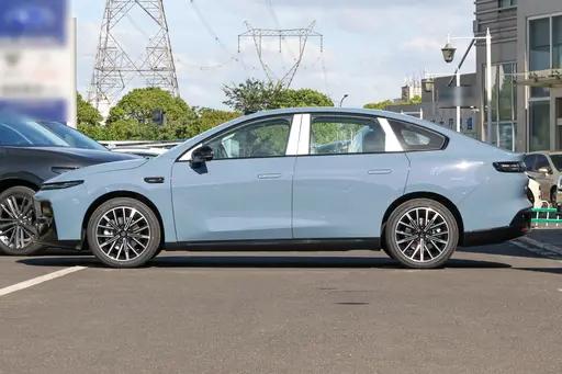 走到侧面,你会发现这台车的线条特别流畅,是那种溜背式的造型,特别有轿跑的感觉。车身用了两段式腰线,上面一条从车头一直延伸到尾灯,下面一条在车门下方,让侧面看起来不那么扁平,有层次感。隐藏式门把手按一下就弹出来,关门自动收回,不仅好看,跑起来还能减少风阻;外后视镜和B柱、C柱都用了黑色涂装,营造出一种悬浮车顶的效果,高级感一下就上来了。我买的是是激光雷达版,车顶有个小小的凸起,但它不是那种突兀地翘起来的,而是和车顶线条融合得特别好,这点在同价位里真不多见。 轮毂的样式也挺运动,配上低风阻的设计,跑起来又稳又省电,毕竟它的风阻系数才0.197Cd,在同级别里算是优等生水平了。