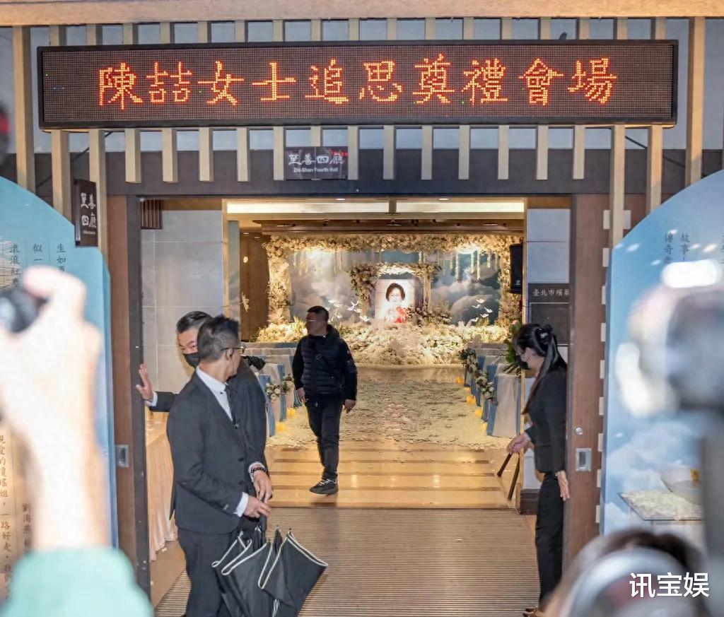 此次花葬仪式简朴而庄重,现场铺满了全白花朵,琼瑶女士的遗像也是挑选了穿着鲜艳的红色洋装的照片。棺木也是白色的,周围也铺满了同款鲜花。