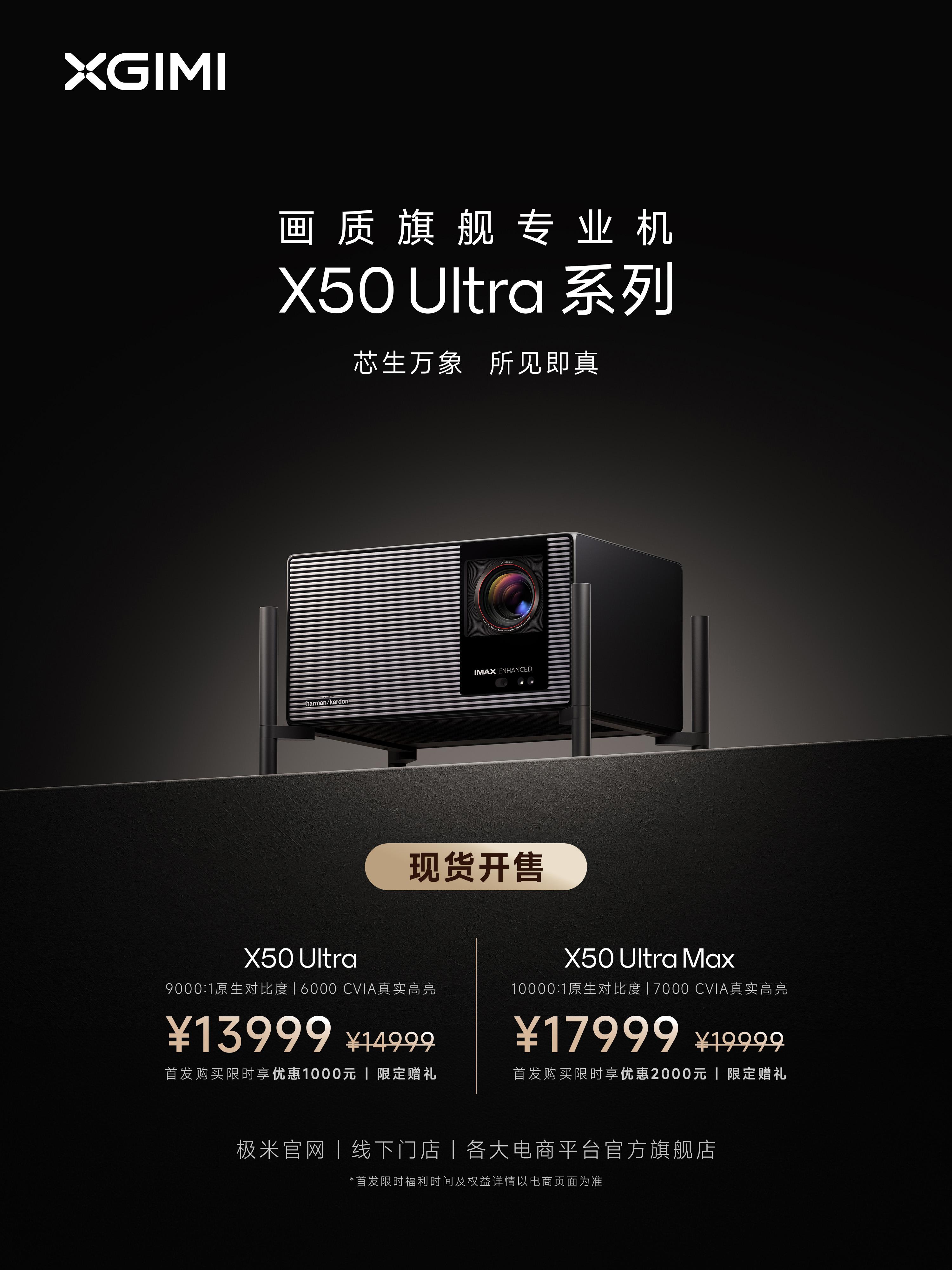 其次,作为整机画质“指挥中枢”,极米与紫光同创联合研发出首款国产智能投影画质专用独立芯片——「X-Vision独立画质芯片」,这也是行业继索尼、JVC后第三块投影专用画质芯片,其强大算力与深度定制算法实现软硬件协同,精准优化画面灰度过渡,让每一帧画面都自然通透;在此基础上,采用全新一代0.47SST架构DMD芯片,并首次将高端影院级RGB纯激光光源引入家用领域,搭配精密校色实现了出色的亮度与色彩表现。作为行业唯一能自研自产镜头的国产投影品牌,极米X50 Ultra系列配备70mm超大直径「X-Master全域变焦大师镜头」,可提供灵活观影体验,进一步完善了仿生光学引擎的全链路画质表现,彰显极米硬核创新实力。在价格上,首发限时到手价X50 Ultra Max 17999元、X50 Ultra 13999元。