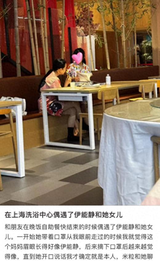 3月7日,有网友发文,称在上海洗浴中心遇到了伊能静和她女儿。网友还爆料称米粒和妈妈聊天时的每一句话伊能静都会回应,而且超级温柔。