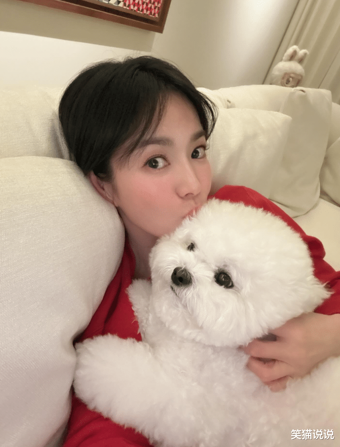 宋慧乔还晒出了她和爱犬Ruby的合照,她躺在沙发上,一手抱着爱犬Ruby,一手拿着手机自拍,看起来十分放松舒适。