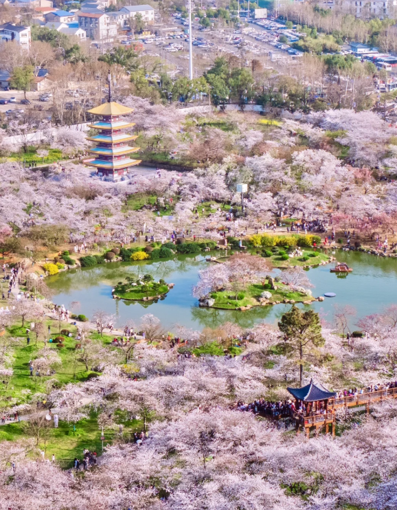 武汉的春天,是一场盛大的、有声有色的仪式。而参与这场仪式最诗意的方式,便是一场从自然到城市、从绚烂到底蕴的漫步。起点,可以设在东湖的樱园。当上千株樱花同时绽放,如云似霞,倒映在碧蓝的湖水中,那一刻的震撼足以洗去所有冬日沉闷。摩肩接踵的赏花人脸上洋溢着纯粹的喜悦,春风吹过,落樱如雪,每一步都踩在柔软的粉白色花瓣上,空气里弥漫着淡淡的清香与蓬勃的生机。