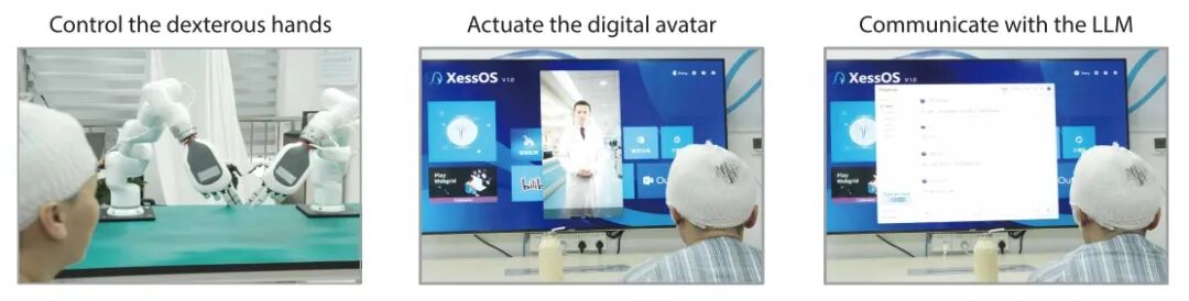 更令人振奋的是,在实时句子解码任务中,仅依靠神经信号时字符准确率为61.5%,加入语言模型后提升至73.1%,通信速率达49.7字符/分钟。参与者成功通过解码系统控制机械臂、驱动数字人 avatar,并与大语言模型互动,准确率最高达78.3%。