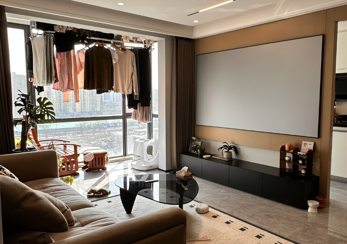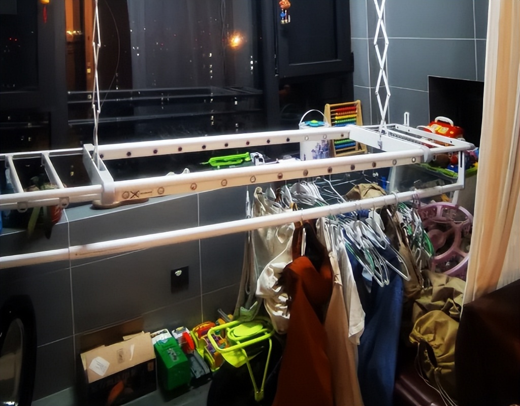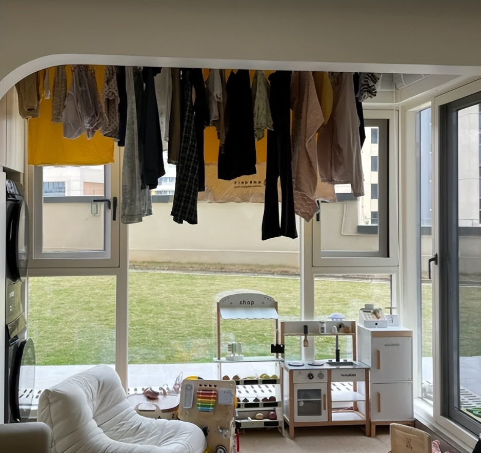 本来阳台的空间很大,但由于变成了晒衣区,每天衣服都悬挂在阳台上,看着很丑!