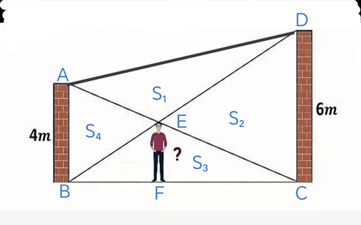 如图所示,已知两堵墙的高度分别是4米和6米,求上图男人的身高。