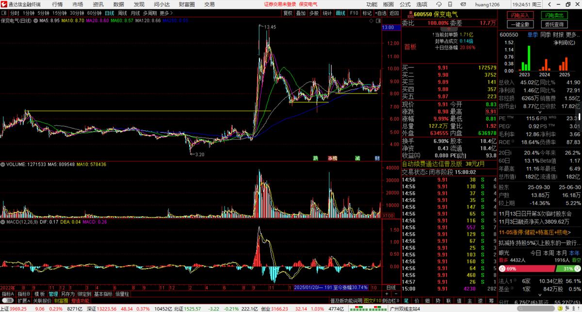 保变电气是典型的“高弹性品种”。其规模小,业绩对特高压等大型项目的招标和执行进度非常敏感,导致盈利波动巨大。2025年上半年的业绩暴增即源于此。同时,其资产质量存在隐忧,特别是极高的存货占比和紧张的现金流。最大的看点在于其控股股东变更为中国电气装备集团,市场期待后续的资产整合与业务协同。这适合对行业周期敏感,愿意承担较高风险以博取短期高回报的投资者。