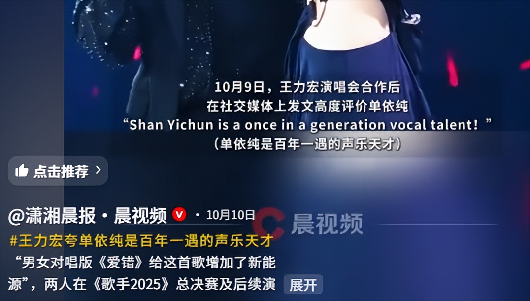 从争议到 “预言成真”随着全运会开幕式演唱与人民日报三次点名引发全网热议,歌手王力宏此前对单依纯的评价也被网友重新挖掘,从当初的 “争议声” 转变为如今的 “预言成真”,成为舆论焦点之一。