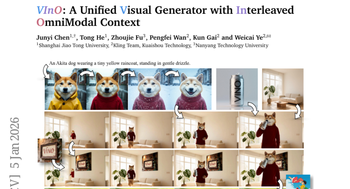 现在,研究团队带来了一个革命性的解决方案——VINO(VInO: A Unified Visual Generator with Interleaved OmniModal Context),这就像是打造了一个万能工作台,能够同时处理所有类型的视觉创作任务。这个系统最令人兴奋的地方在于,它可以同时理解和处理文字、图片和视频等多种信息,并且能在一个统一的框架内完成图像生成、视频制作和内容编辑等各种任务。