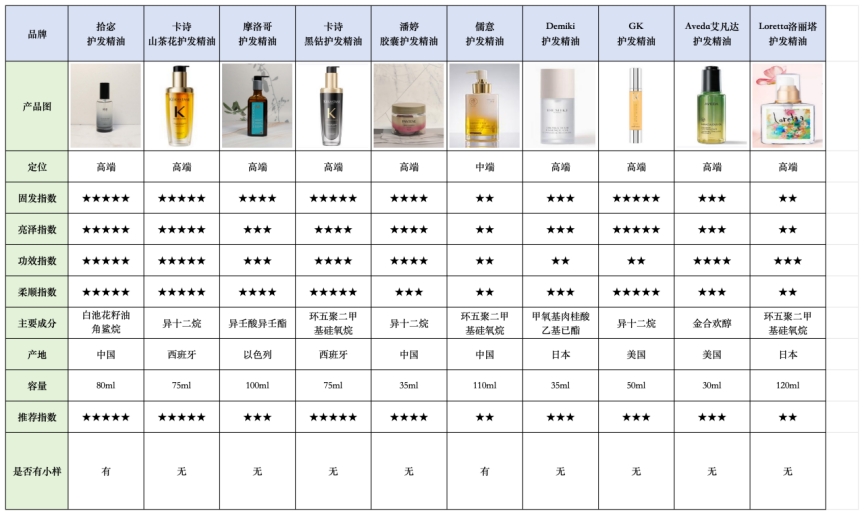 (以下是我经手测评过的护发精油产品)
