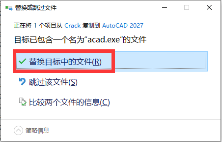 14、点击【替换目标中的文件】。