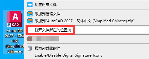 12、去电脑桌面找到CAD2027的图标,鼠标右键,选择【打开文件所在的位置】。