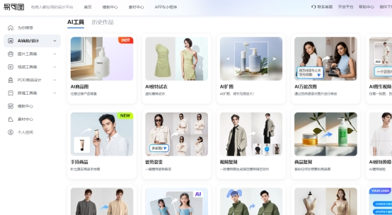 易可图是一款以电商视觉为核心场景的 AI 作图工具,目前在电商卖家群体中使用较为广泛。