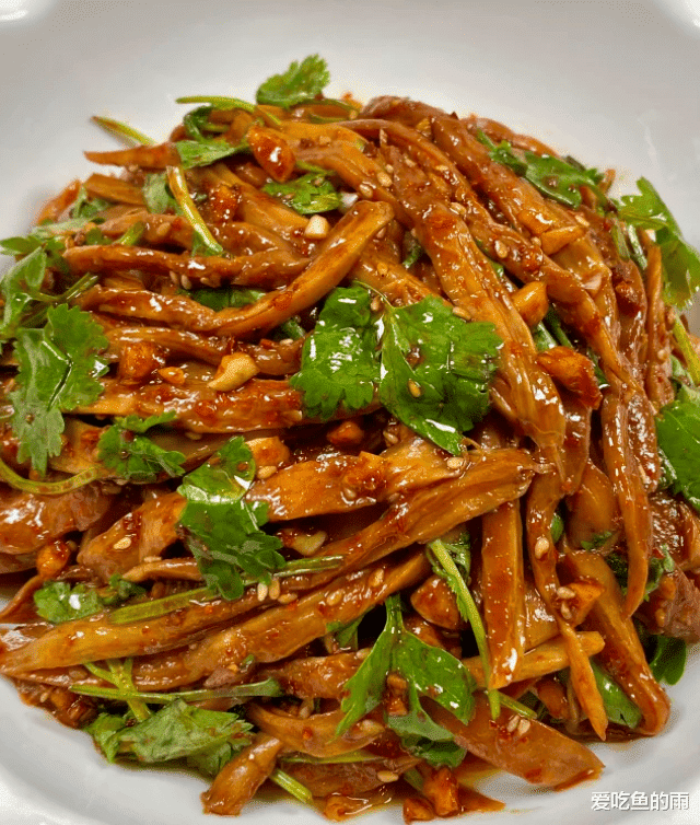 吃的时候,先是酸辣扑鼻,接着是杏鲍菇特有的鲜甜和嚼劲,越嚼越香,完全没有生涩感。它不像普通凉菜那样寡淡,反而层次丰富——有蒜的醇、辣的冲、醋的爽、花椒油的麻香,还有杏鲍菇本身的“肉感”质地,吃素却像在啃小肉条,超级满足!