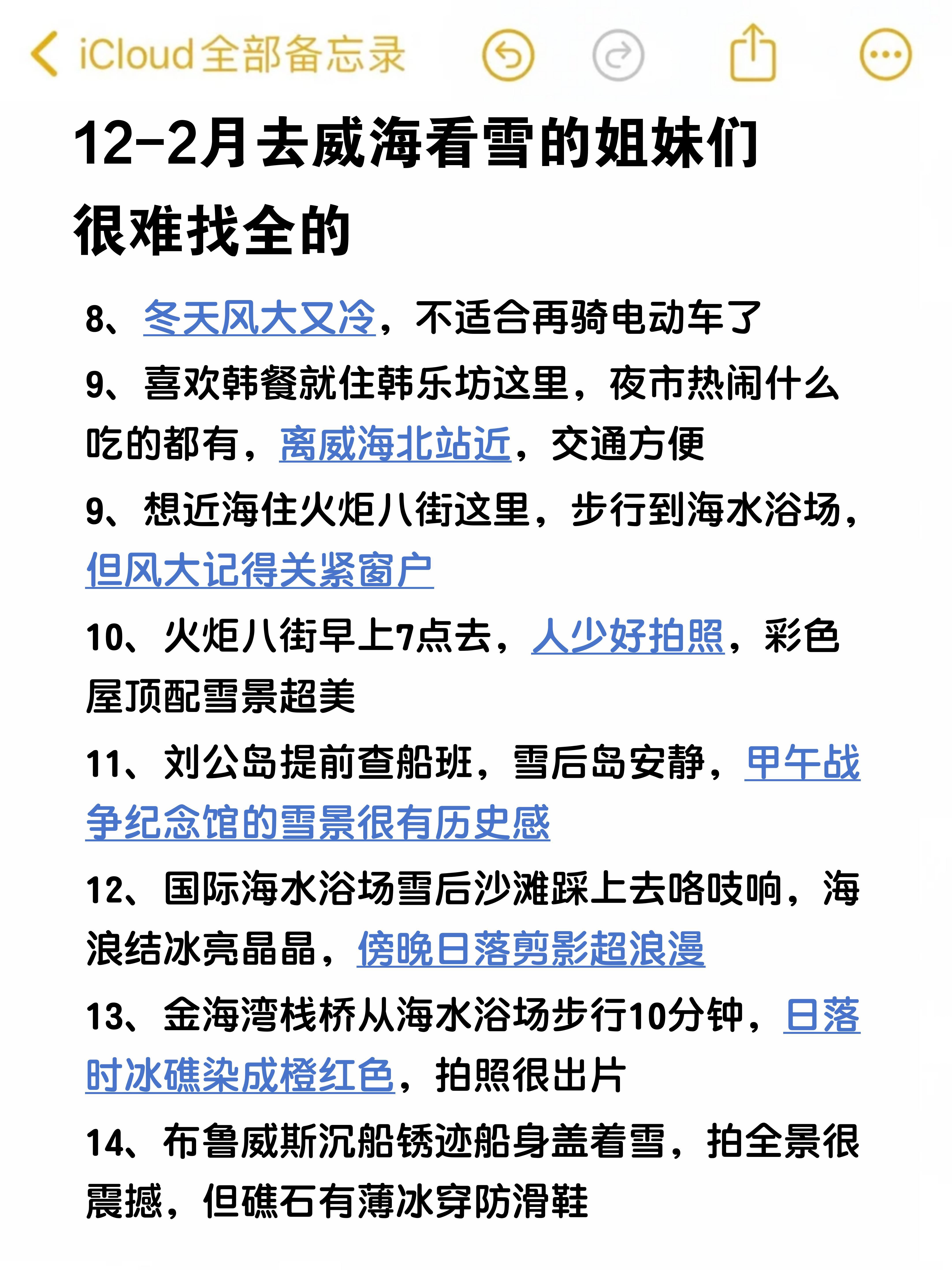 📍第1️⃣天7点直奔火炬八街,趁人少拍彩色屋顶和雪景❄,9点到刘公岛码头,甲午战争纪念馆的雪景很有历史感,中午去巧克力渔家,点海肠捞饭🍲和现蒸海鲜,蘸蒜醋汁吃,鲜得很,下午国际海水浴场🏝走走,雪后沙滩咯吱响,拍日落剪影超浪漫~