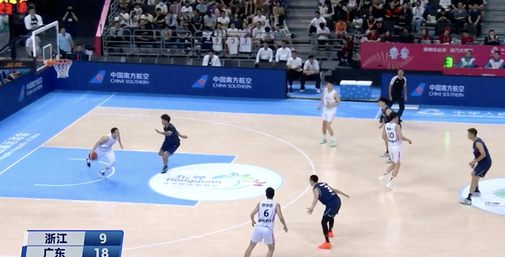 全运会迎来了一场精彩的比赛,广东队大战浙江队。比赛一开始,广东就打出了强势的开局,22-9压制浙江队,这是一个很好的开局了。赵睿首发出战,状态非常火爆,开局5分钟就拿到了8分。而胡明轩状态也是回暖了,敢于突破,这样的状态才行广东队啊!