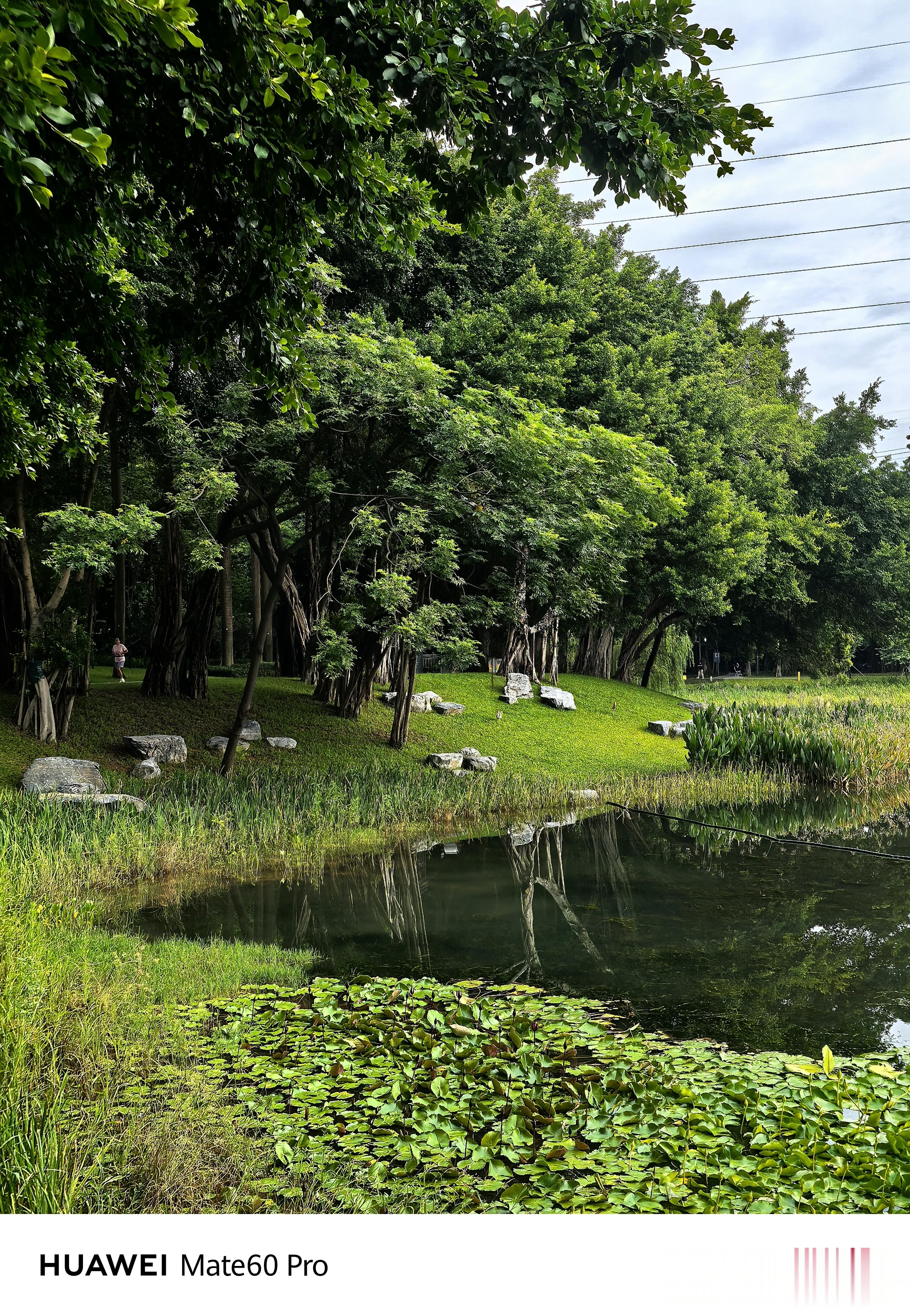 湖畔绿树成荫,石块错落,草色如茵。早起的游人走过,身影浅浅地融在树影间,也融进了这幅静谧的画里。这里没有茶峒的白塔与吊脚楼,却流转着同样的清灵与悠远;没有渡船上的歌声,却有风吹树叶的沙沙轻语。
