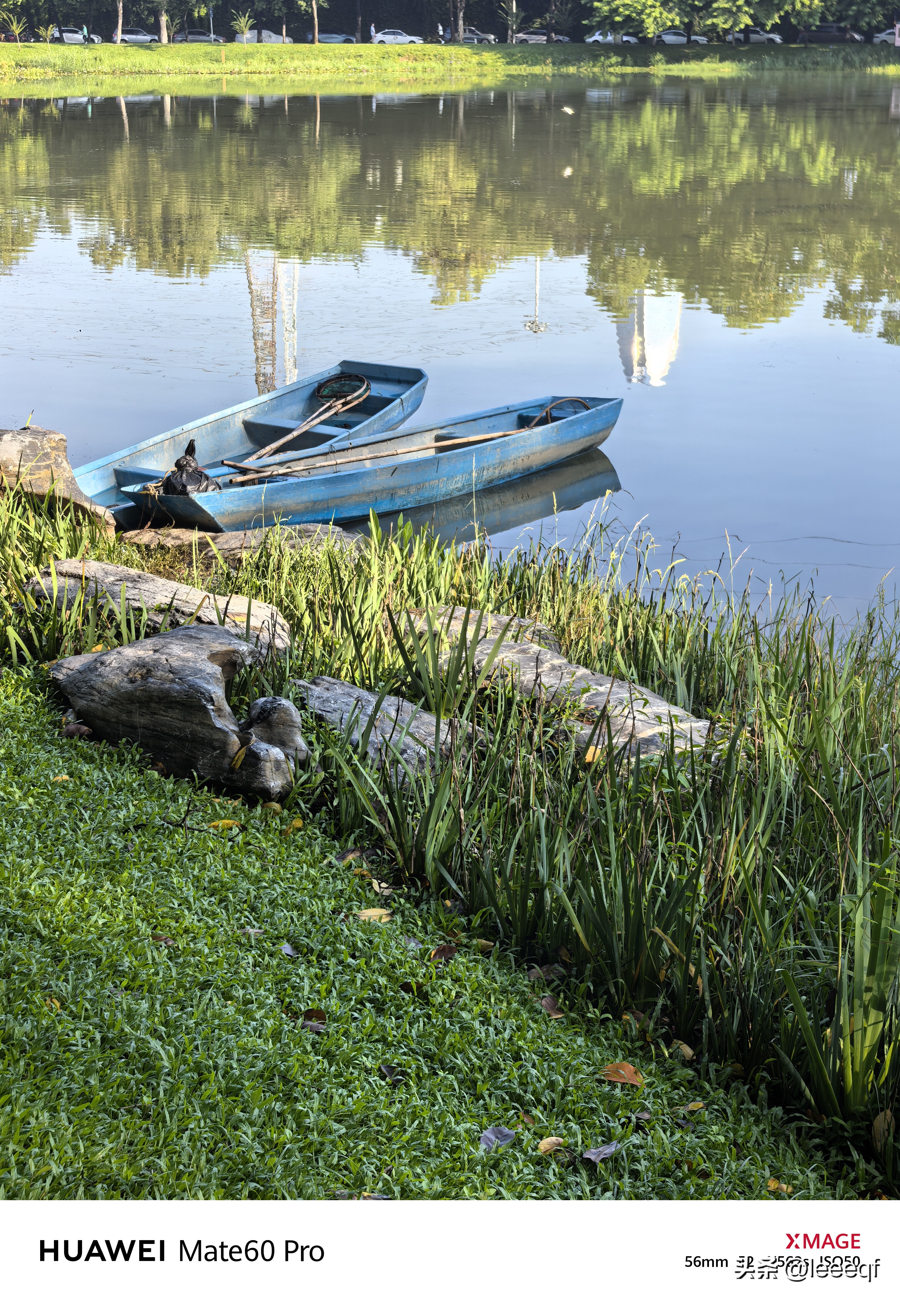 两艘蓝漆小船静泊岸边,竹篙横放,仿佛正等待那位素朴的翠翠来摆渡。湖岸边蒲草青青,睡莲田田,荷叶叠翠间,粉荷初绽。脸上满是皱纹,眼睛却总是笑眯眯的爷爷蹲在岸边的石上抽着烟,那条黄狗盯着那烟锅明明灭灭。风轻轻地吹,叶动花摇,漾起极细极轻的涟漪,也荡开了我心底的柔软。