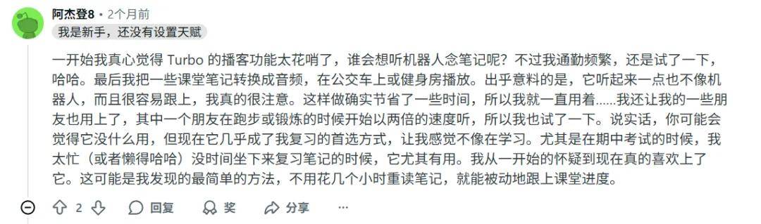 有人原本以为让 AI 把笔记读成播客只是个 gimmick(噱头),结果在公交车上试了一次,居然上头了——不但不无聊,反而能记住重点。